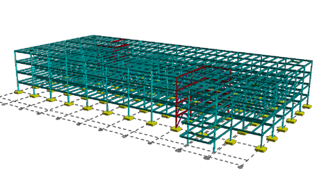 One of the challenging aspects of the project was the corner columns were outboard of the edge of slab. One axis of the column is unbraced for the full height of the building and was analyzed based on bracing provided by the weak axis bending of the beam in the perpendicular direction. |